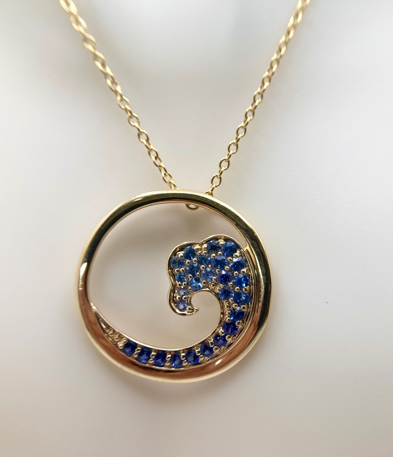 Gold and Sapphire Wave Pendant